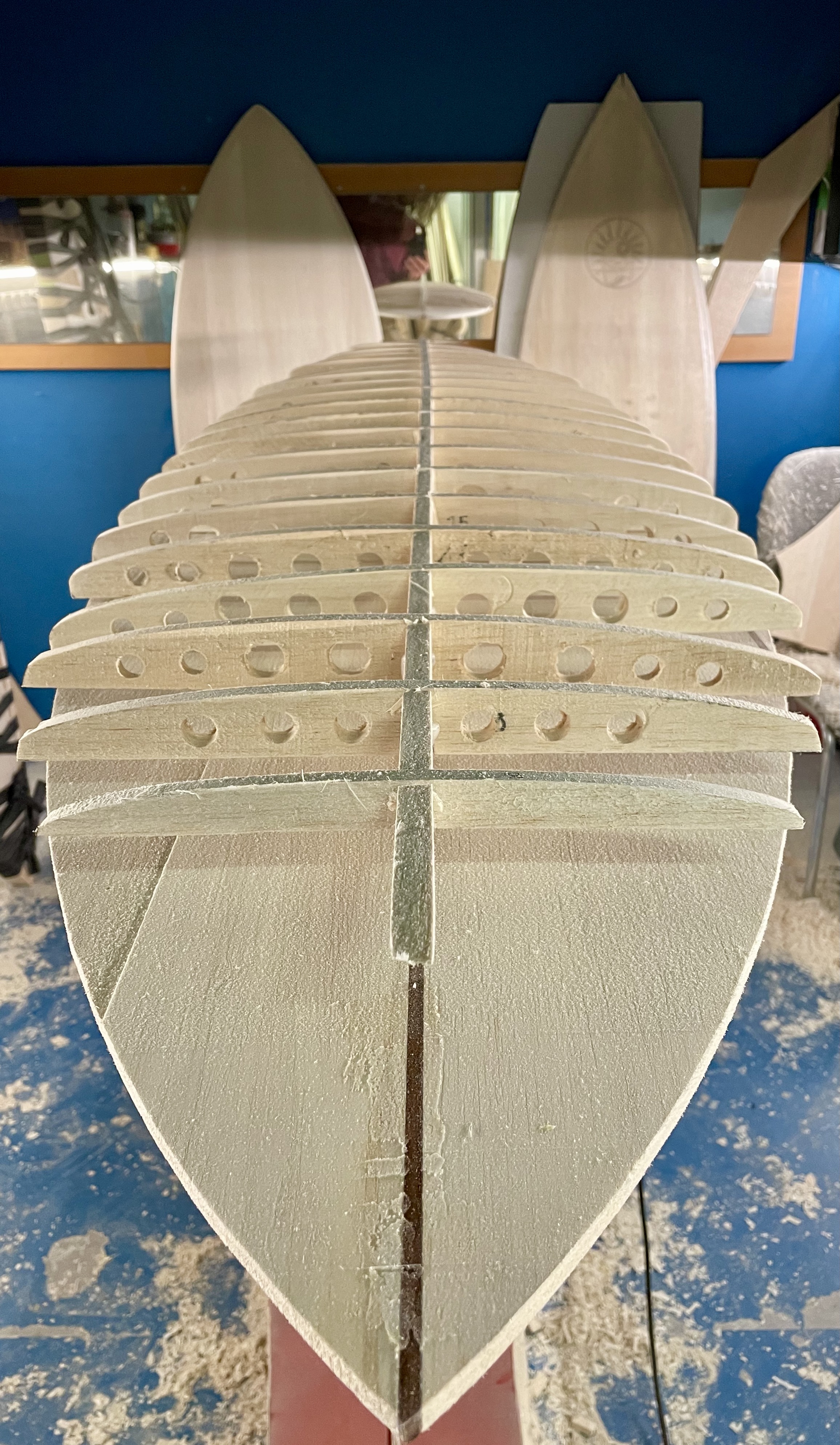 The blanks do not have a stringer but a middle pole that shapers can use as a guide. Here you simply mark half of the middle stem and can be sure to have the center. Why the Agave blanks don't have a stringer is because they don't need it due to their fiber structure. You can imagine that the entire blank consists of many stringers. The only difference is that they are holistic, like a lot of straws close together. This makes them incredibly light, but also very stable.